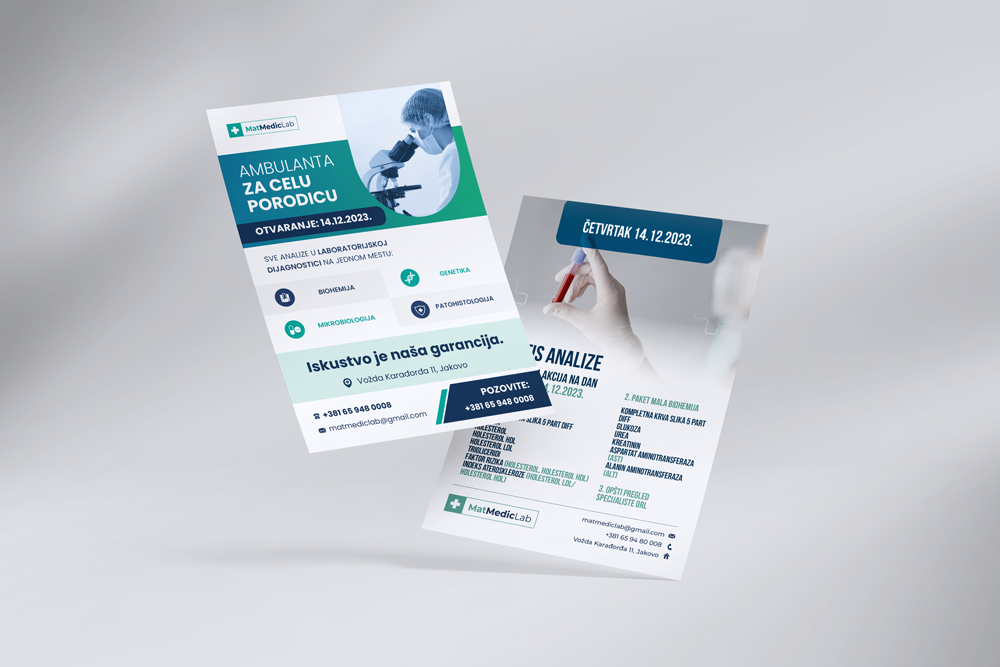 In crafting the flyers for MatMedicLab, our primary focus was to ensure that every aspect of the design aligns with the laboratory's commitment to excellence and patient-centric care. From the choice of typography to the selection of imagery, every element was meticulously chosen to convey professionalism, expertise, and reliability. By presenting information in a clear and concise manner, the flyers serve as an effective tool for educating potential clients about the breadth and depth of services available at MatMedicLab.